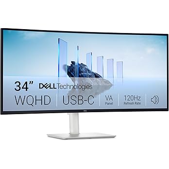 Dell 34 Plus USB-C Curved Monitor – S3425DW – 34-inch (3440 x 1440) up to 120 Hz 21:9 Display, VA Panel, AMD FreeSync Premium, 99% sRGB, 95% DCI-P3, Integrated Speakers, 3000:1 Contrast Ratio $349.99